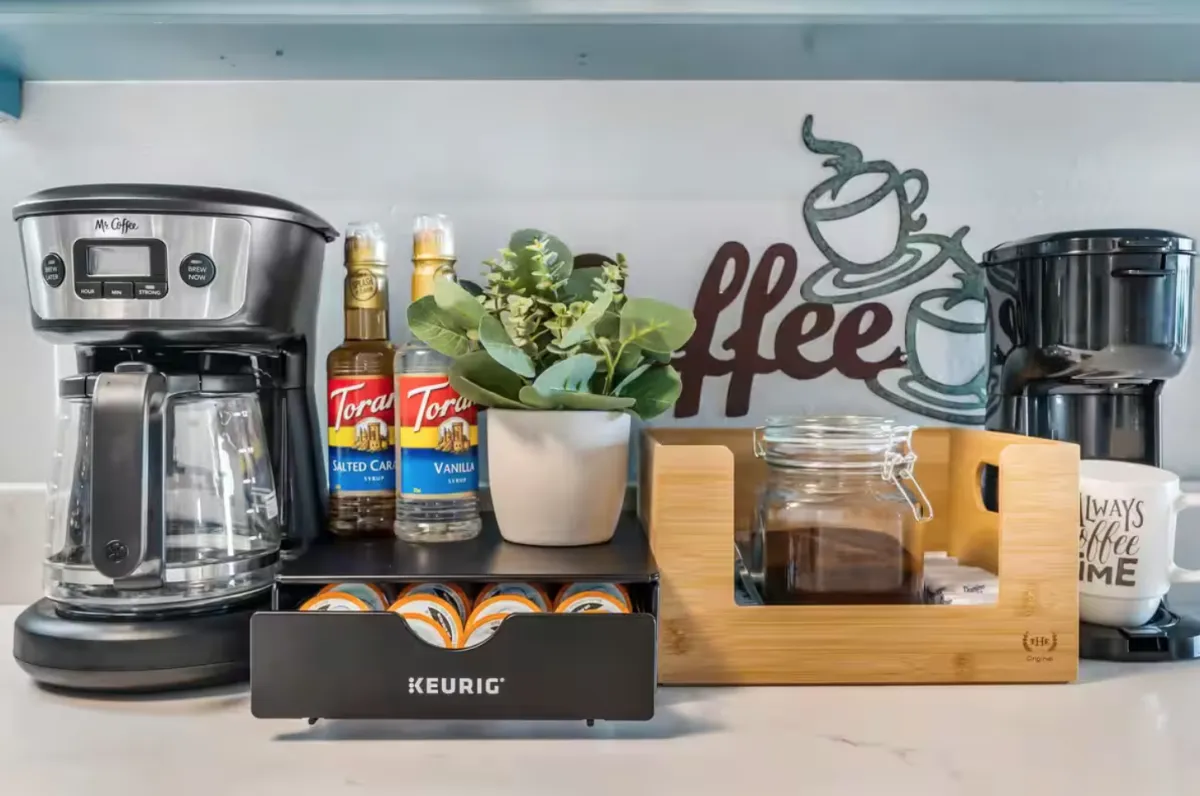 Fully Equipped Kitchen -Fridge/Freezer/Oven/Stove/Microwave/Ice Maker/Blender/Toaster/K-cup and Drip Coffee (we provide starter)/Breakfast Bar/Dining Table - 4 Chairs + bench - High chair available