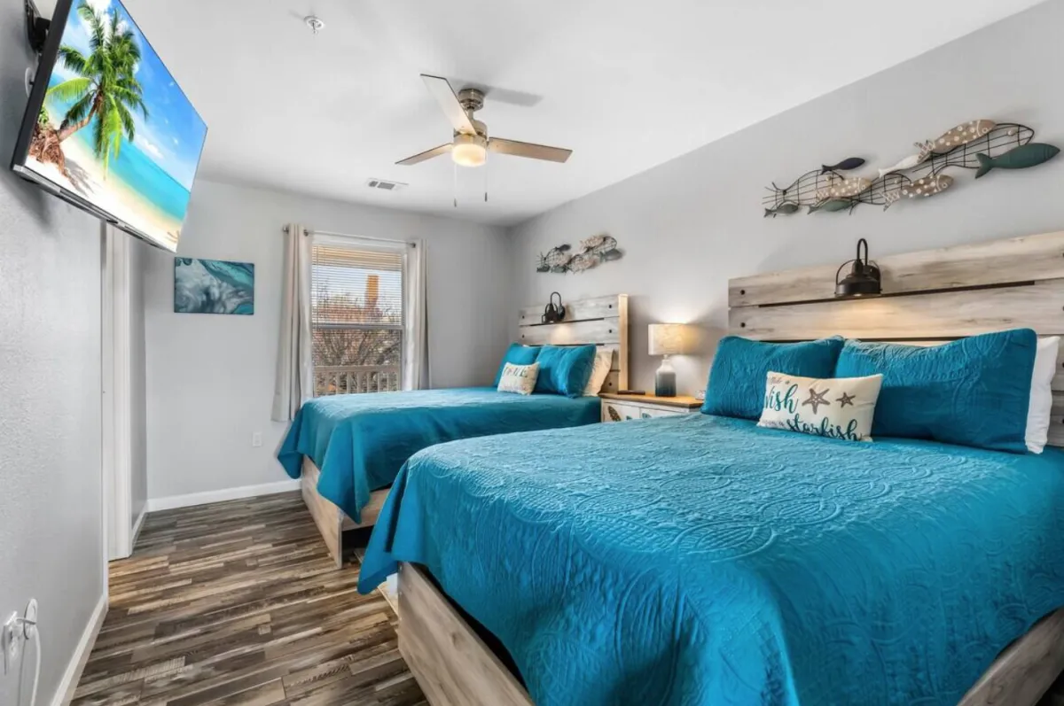 Guest Bedroom #3 - 2 Full beds - 42" Smart TV - Walk-in closet - Ceiling fan - Direct private access to jack and Jill Bathroom - Tub/Shower Combination - Single vanity sink/Toilet
